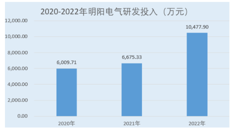明阳电气遥远坚抓自主革命,以技巧革命算作发展的中枢驱能源,将研发智商的提高算作发展的紧迫基石和策略要点。在研发干与方面,明阳电气研发干与限制逐年增大。2020-2022年,明阳电气的研发干与差别为6,009.71万元、6675.33万元、10,477.90万元,年及复合增长率达32.04%。