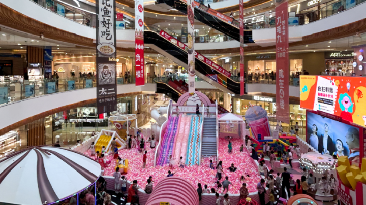最近,坚基购物中心一楼中庭变身“黑甜乡乐土”,脸色明艳的卡通玩偶被行动牌号,蹦床、海洋球池、小滑梯,可儿的充气安设搭建出童真寰球,成为暑假孩子们的乐土。“孩子放暑假了,很可爱来这里玩。我特意买了298元的10次卡,以后多带孩子出来玩。”赵女士说。